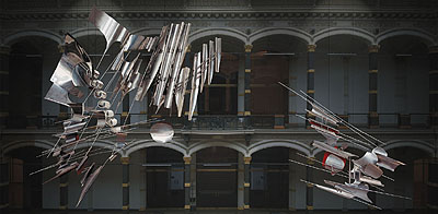 The exhibitions centrepiece will be the hanging of Kosmos 70 in the atrium of Martin-Gropius-Bau. This large, two-part hanging sculpture (9 x 18 x 4 m) hung in the foyer of the Berlin Reichstag from 1970 until 1994, and was removed during the buildings recent renovation by Sir Norman Foster.